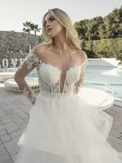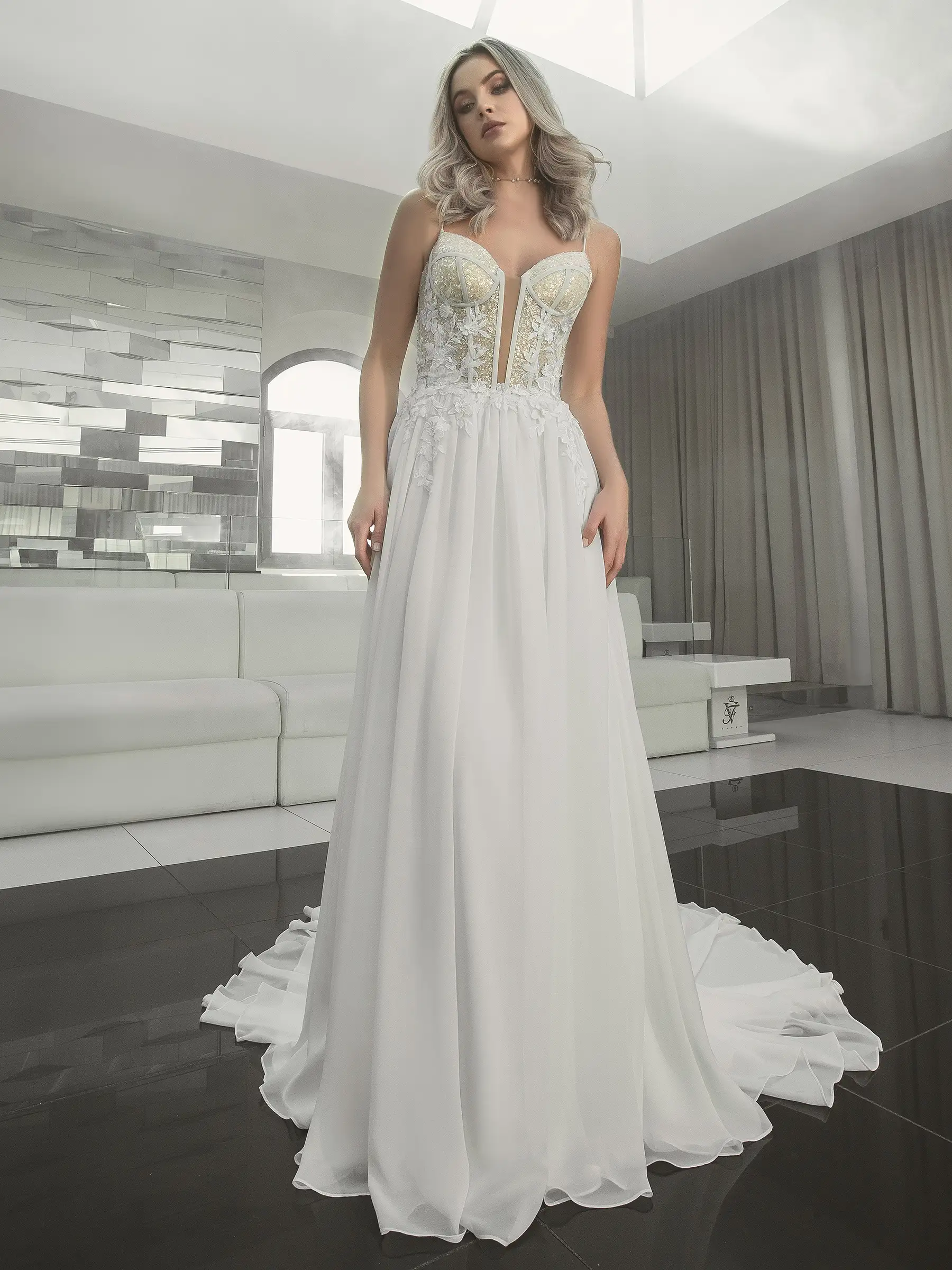 Abito da sposa ricamo pizzo chiffon