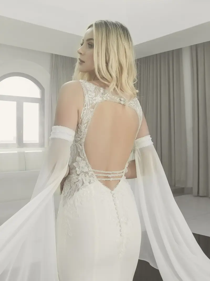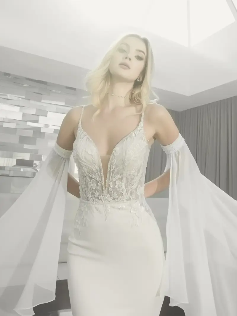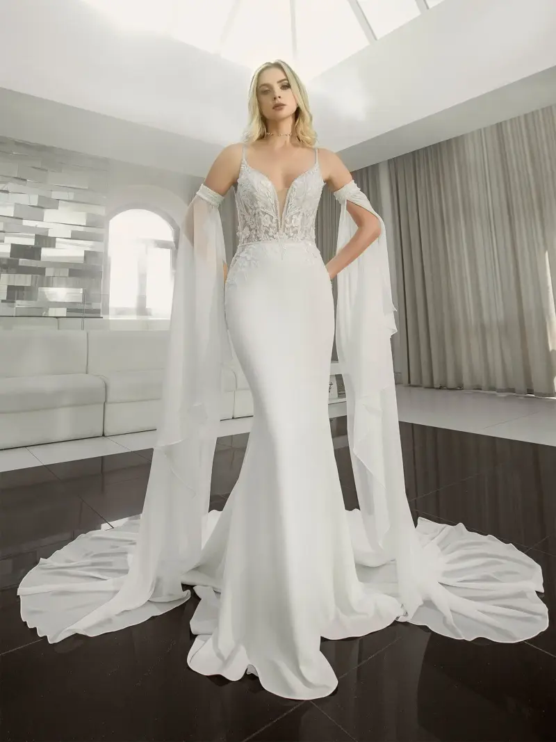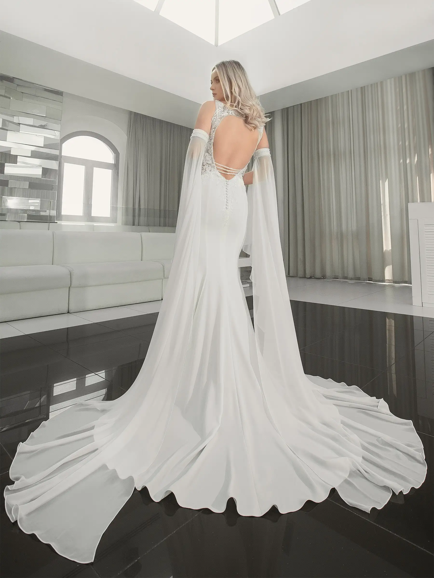 Wedding Dress Embroidery Lace Crepe and Chiffon